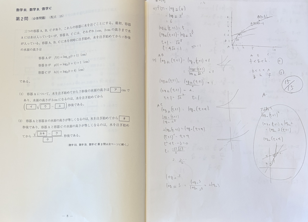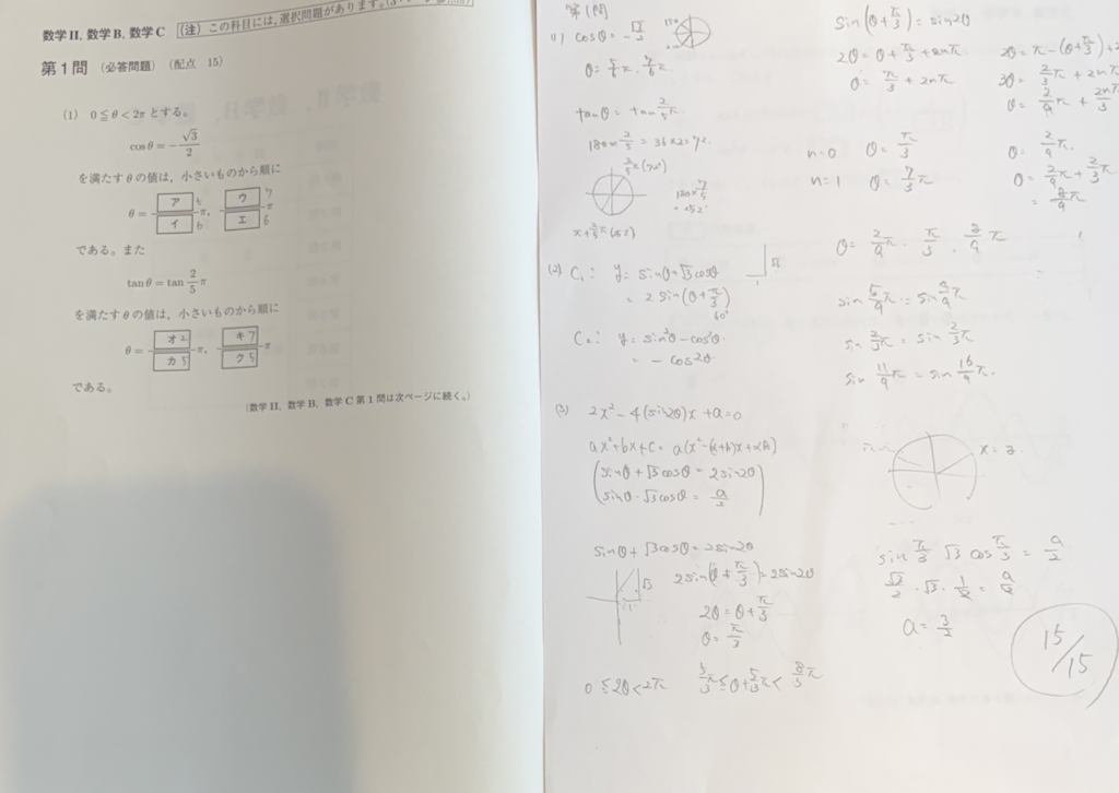 テスト練習がやりたくなくて普段進みませんが、数学2Bのテスト問題を解きました。第1問三角関数、第2問指数対数、それぞれ満点でうれしい。ただ時間を気にせずにゆっくり解いていますし実力もまだまだなので、これからよくしていきたいです。複素数や式と曲線は事前にもう一度練習したいですが、微積・数列・ベクトルはなるはやで取り組みたいです。