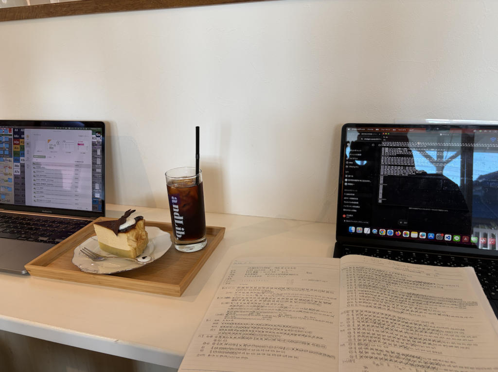 今日は代行の社長がきてくれて、おしゃれなカフェにつれていってもらって並んで作業した。